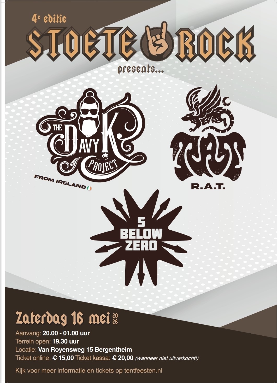 De blues Rock formatie ‘Davy K Project’ komt speciaal over uit Ierland voor StoeteRock. Dit powertrio zal het festival afsluiten met met een verrassende mix van eigen songs en welbekende covers. Frontman Davy Kerrigan is zanger maar bovenal gitaarheld en weet op onnavolgbare manier zijn publiek versteld te laten staan.